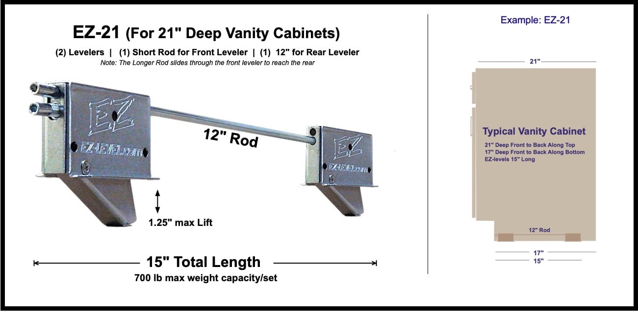 all hardware necessary for either the "right or left" side of any 21" base cabinet.